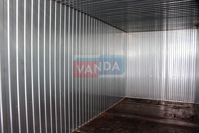 Бытовка под склад № 3 (Вариант 1) изготавливается из несущего каркаса (верхняя и нижняя обвязка): швеллер 100х50х3 мм., угловые стойки: сложно - гнутый угол 90х90х6 мм., крыша блок-контейнера: металл сварной 0,9-1 мм., качественная наружная отделка: оцинкованный профлист, внутренняя отделка стен: Оцинкованный профлист, внутренняя отделка потолка: Оцинкованный профлист, вспомогательный деревянный каркас (стены): брусок 40х75 мм., лаги пола: обрезная доска 40х100 мм., лаги потолка: обрезная доска 40х100 мм., выполнено утепление: Минеральная вата «ISOVER» – 50 мм. и пароизоляция: плёнка техническая, черновой пол состоит из: обрезная доска 20 мм. (2 сорт), чистовой пол покрыт: сухая, половая, шпунтованная доска 28 мм., отделка пола выполнена из качественных материалов. Контейнер комплектуется металлическими воротами.